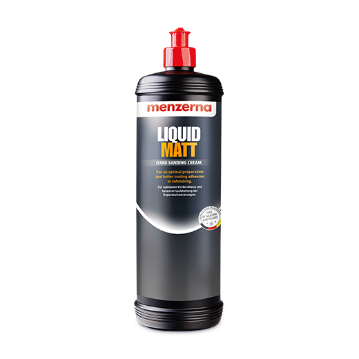 Матувальна абразивна паста Menzerna Liquid Matt 1л - призначена для рівномірного матування лакофарбового покриття на деталях будь-якої форми перед ремонтним фарбуванням або поліруванням. Забезпечує матовість поверхні, аналогічну результату шліфування абразивом із зерном Р1200. Забезпечує оптимальні умови для досягнення надійних результатів під час ремонту або фарбування. Продукт на водній основі підходить для механічного чи ручного нанесення.